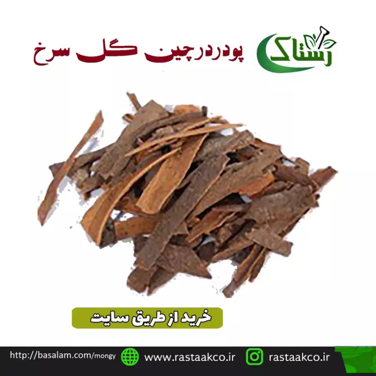 خواص چوب دارچین پودرگل سرخ مزاج دارچین گرم و خشک است و باید در گرم مزاجها با احتیاط مصرف شود. مصرف به همراه کتیرا و مصطکی مصلح، کاهنده عوارض و بهبود دهنده خواص و مزاج دارچین است. 1. منبع غنی آنتیاکسیدان 2. خواص ضدالتهابی 3. محافظت از قلب 4. مقابله با دیابت 5. جلوگیری از کاهش سطح یادگیری و مراقبت از فعالیتهای مغزی 6. کاهش احتمال ابتلا به سرطان 7. جلوگیری از عفونت و ورود ویروسها 8. حفظ سلامت دندانها و خوشبوکنندهی دهان 9. سلامت پوست 10. مبارزه با آلرژی....